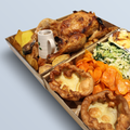 The main event of your festive feast: British free-range roast chicken served hot with tender savoy cabbage, carrots, golden Yorkshire puddings, creamy cauliflower cheese, and rich gravy. For our vegetarian guests, we have a delicious salt-baked celeriac with a velvety celeriac and roast garlic velouté.